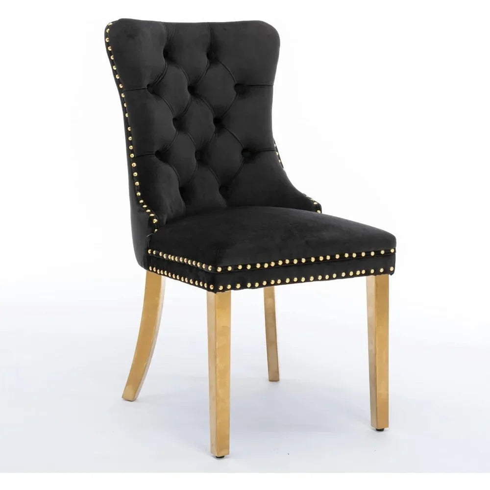 - 4 velvet upholstered dining chairs with ergonomic design and stainless steel legs for lasting comfort and support.