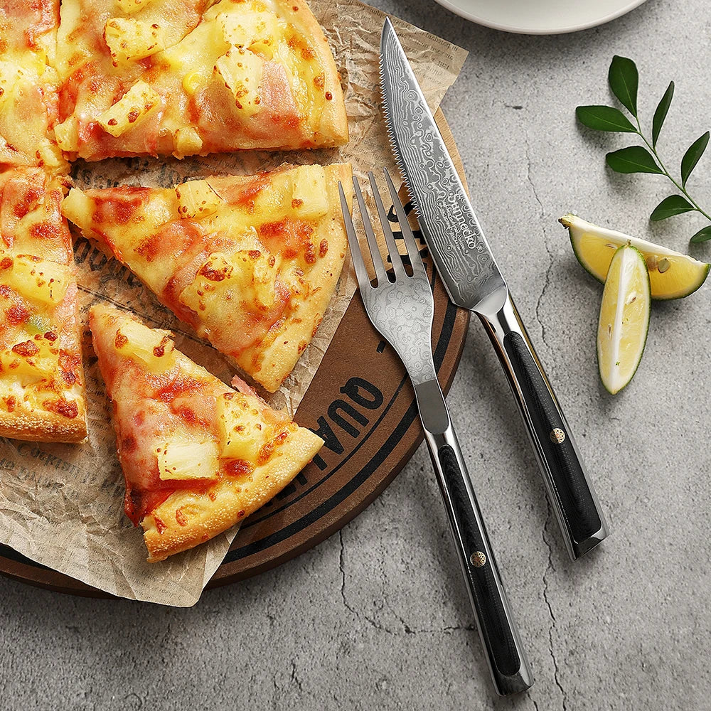Sunnecko SeventyThreeLayer VG10 Damascus Steel Forks And SteakKnives Set PremiumProfessionalGrade